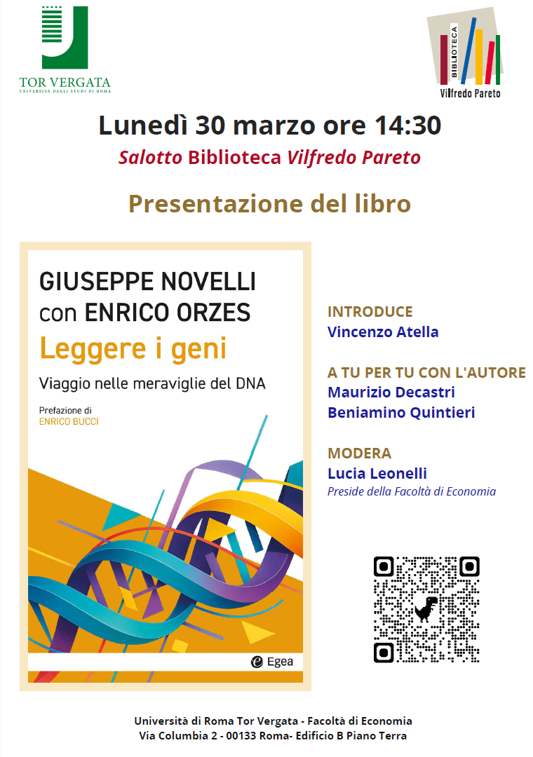 presentazione del libro "LEGGERE GENI VIAGGIO MERAVIGLIE DNA" Lunedì 30 marzo ore 14:30 Salotto Biblioteca Vilfredo Pareto