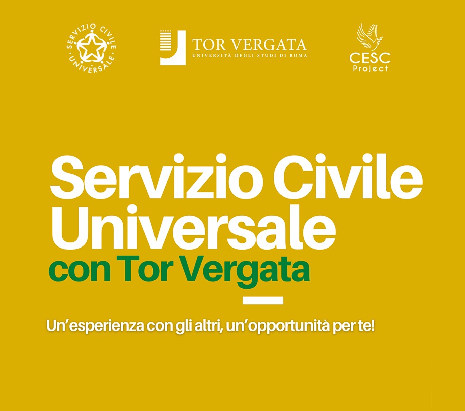 L'Università degli Studi di Roma Tor Vergata in collaborazione con il CESC Project, promuove un incontro informativo sulle modalità di candidatura al Servizio Civile Universale (scadenza del bando: 8 aprile 2026).