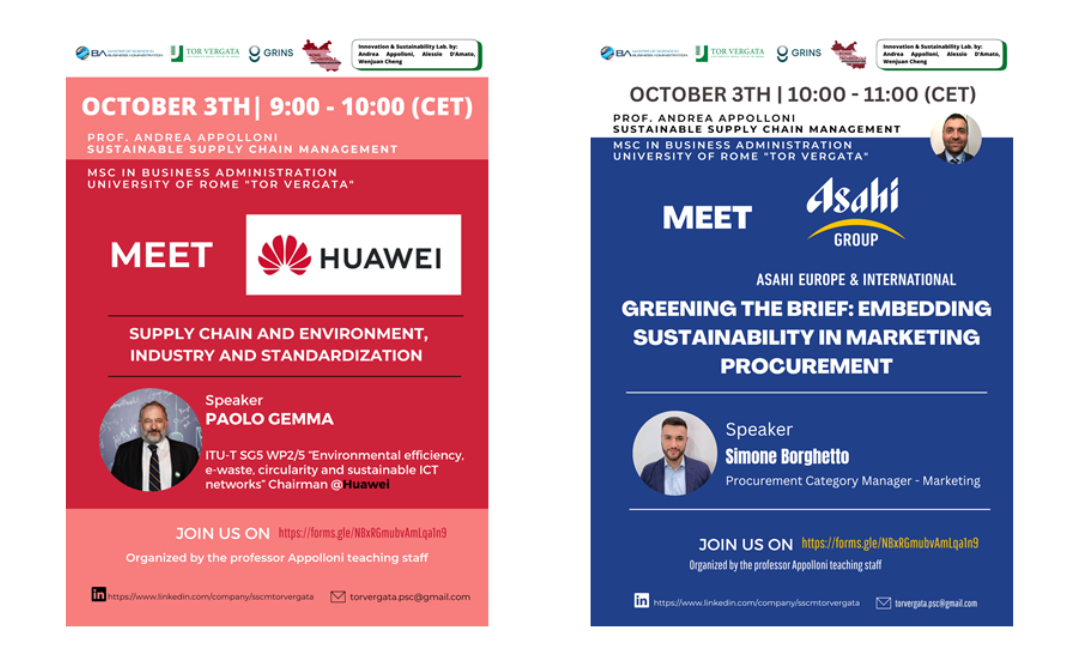 The Sustainable Supply Chain Management online class will host two Special Guests: Paolo Gemma from HUAWEI and Simone Borghetto from Birra Peroni – Asahi Group.