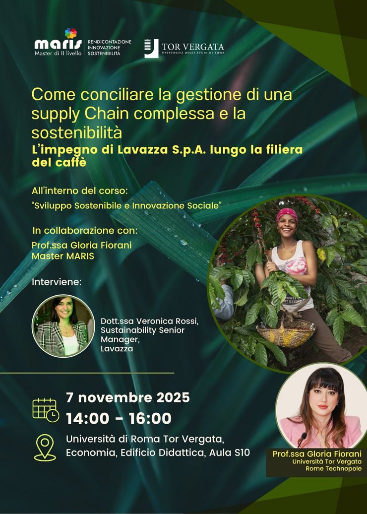 Ad aprire questo percorso sarà la Dott.ssa Rossi, Sustainability Senior Manager di Lavazza SpA, che approfondirà le modalità di gestione della catena del valore, illustrando le strategie e le pratiche adottate dal Gruppo per garantire tracciabilità, responsabilità sociale e riduzione dell’impatto ambientale lungo tutta la filiera del caffè.