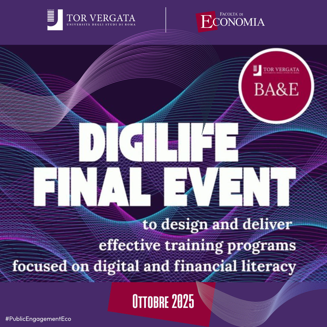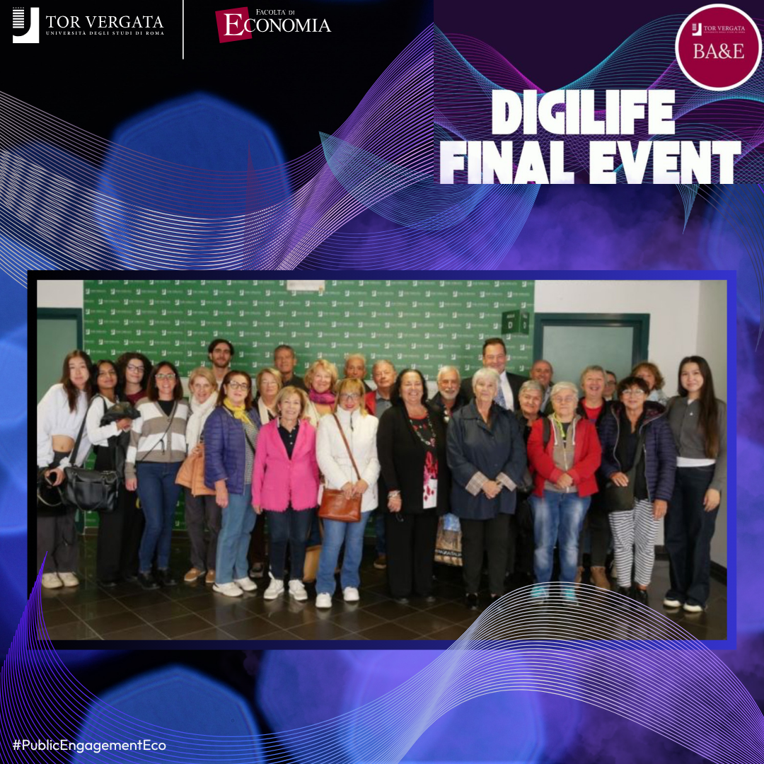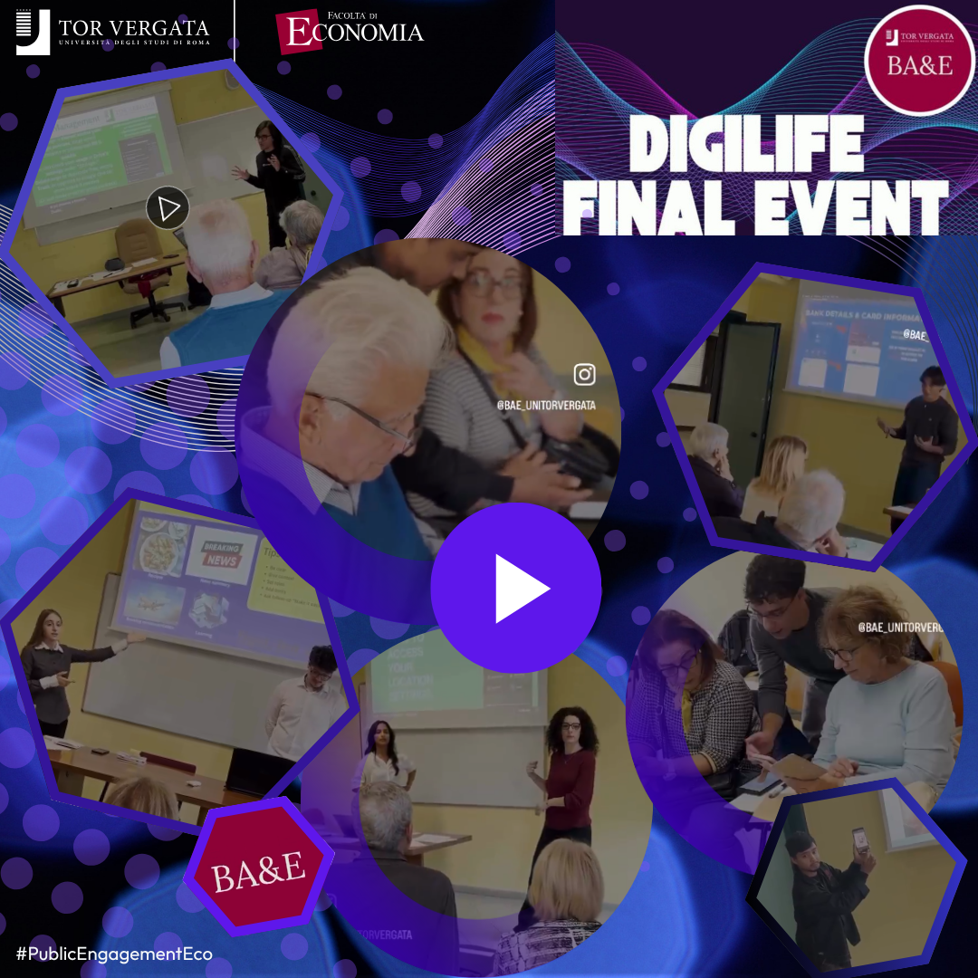L’iniziativa, promossa dal Prof. Gianluca Mattarocci del Dipartimento di Management e Diritto, ha rappresentato la fase conclusiva del progetto europeo ERASMUS+ Digital Life Learning - DIGILIFE, finalizzato a formare studenti universitari grazie a macro-laboratori guidati, per consentire loro di trasmettere in modo efficace a persone anziane conoscenze digitali di base, fondamentali per adattarsi a un panorama tecnologico in rapida evoluzione (come per esempio nel caso dell'utilizzo di strumenti di pagamento online e dei principali servizi finanziari digitali).